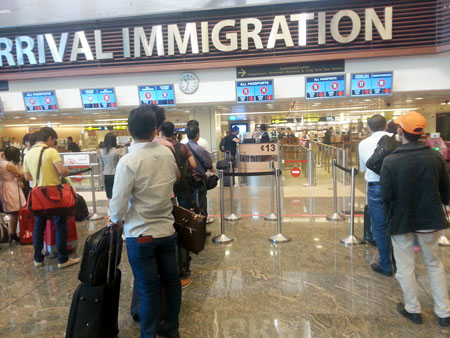 Khu vực làm thủ tục nhập cảnh tại cửa khẩu sân bay quốc tế Changi - Singapore