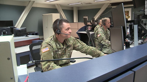 Các nhân viên trong phòng điều khiển trung tâm ở căn cứ Fort Greely. Ảnh: CNN.