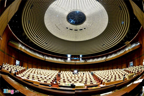 Bên trong Hội trường hình tròn với 600 chỗ ngồi, nơi diễn ra các kỳ họp Quốc hội.
