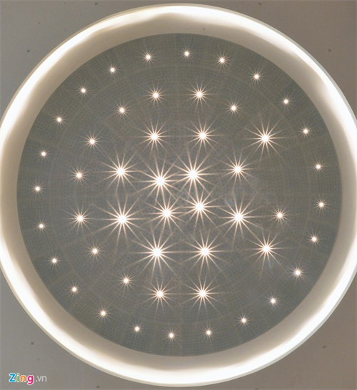 Trung tâm của vòm trần của phòng họp là một đèn chùm pha lê lớn trọng lượng 5 tấn chuẩn bị được lắp đặt trong ít ngày tới. Hạng mục trang trí này được phép lùi hạn hoàn thành nửa tháng so với kế hoạch bàn giao cả công trình do tính chất đặc biệt của hệ trần cần nhiều thời gian thống nhất thiết kế, làm mẫu, thí nghiệm âm thanh và duyệt mẫu.