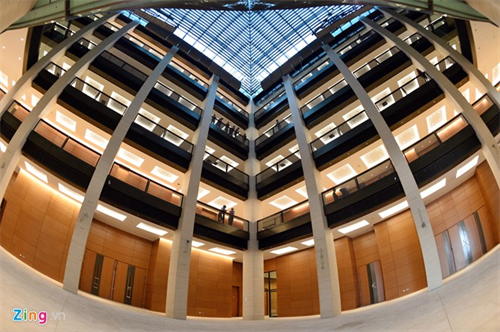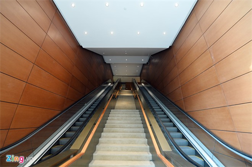 Hai bên là hai hệ thống thang cuốn chạy từ tầng 1 đến tầng 3. Còn lại các tầng khác phải sử dụng thang máy.