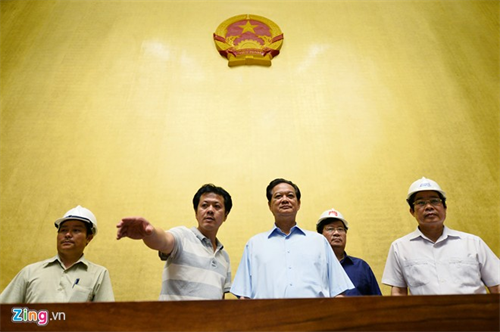 Chiều 3/10, Thủ tướng Nguyễn Tấn Dũng đã thị sát Nhà Quốc hội, công trình hiện đại với 5 tầng nổi, 2 tầng hầm, tổng diện tích sàn trên 60.000 m2.
