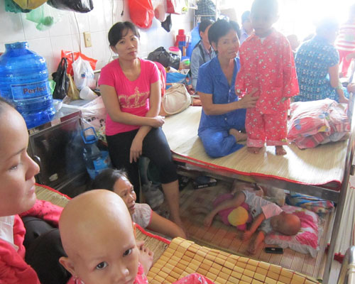 BS Lê Hoàng Minh, Giám đốc BV Ung Bướu TP HCM, cho biết: “Bệnh nhân không có chỗ nằm, mang tiếng là đến BV để nằm điều trị, nhưng thực chất là họ “ngồi” để điều trị”. Giường thực kê của BV chỉ có 631 chiếc nhưng số bệnh nhân điều trị nội trú luôn lên đến 1.800 người và ngoại trú 9.510 người, nên tình trạng nằm ghép, nằm hàng lang, dưới gầm giường là không thể tránh khỏi.