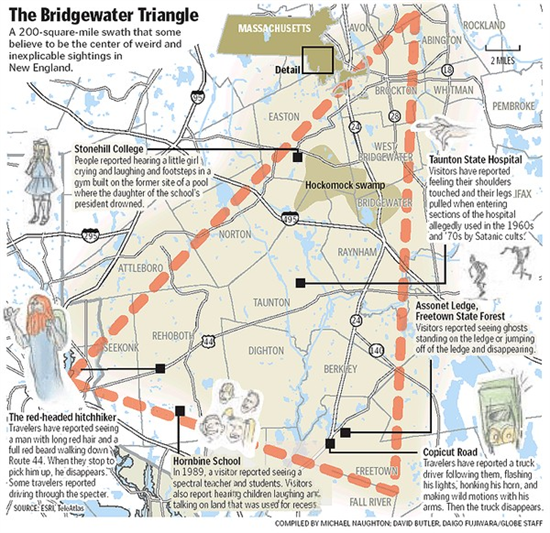 Đây là một khu vực, tam giác khổng lồ mang tên Bridgewater với diện tích khá rộng bao gồm các thị trấn Abington, Rehoboth và Freetown tạo thành góc của một tam giác và nhiều thị trấn khác nằm bên trong đó. Chứa đựng quá nhiều điều lạ thường khiến các nhà khoa học phải đau đầu…