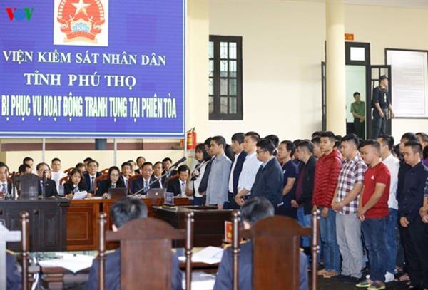 Sau phần trả lời căn cước của 91 bị cáo có mặt tại tòa, thẩm phán Nguyễn Thị Thuỳ Hương cho biết bản án sẽ được công bố lên cổng Thông tin điện tử (của TAND tỉnh Phú Thọ). Nhưng các bị cáo có quyền từ chối công bố bản án lên cổng Thông tin điện tử nếu có lý do cá nhân.