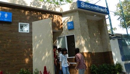 Nhà vệ sinh 5 sao do Sacombank xây dựng có diện tích khoảng 60m2, phía trước được lắp đặt máy rút tiền tự động ATM. Mỗi nhà vệ sinh có hai nhân viên trực vệ sinh, lau dọn làm theo ca, mở cửa từ 5 giờ sáng đến 22 giờ đêm.