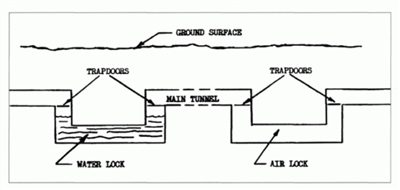 Khi các tổ đào đã thông được địa đạo với nhau, giếng đào được đặt một cây tre thông xuốt làm ống thông hơi, giếng đào được lấp đi, lèn chặt và ống thông hơi được ngụy trang dưới dạng tổ mối hoặc gốc cây mục hay bất cứ hình dạng nào khác….