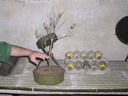 Mìn chống tăng tự tạo, dàn phóng bom bi tự tạo của du kích Vành đai thép Củ Chi.