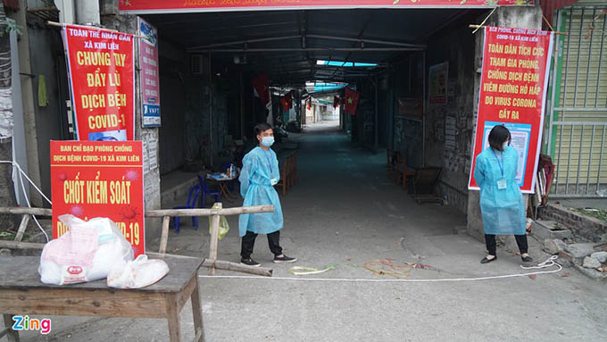 Chốt kiểm soát dịch tại xã Kim Liên. Ảnh: Nguyễn Dương.