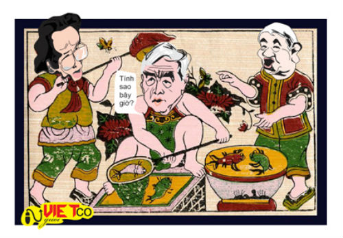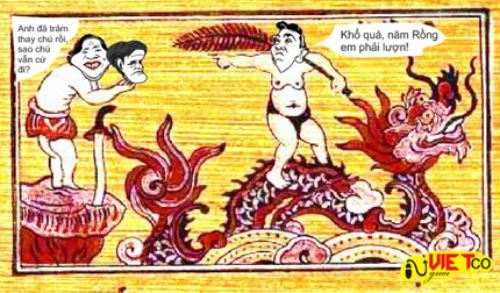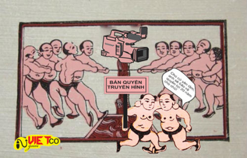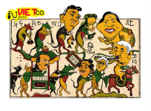 Hơn 10 bức tranh dân gian Đông Hồ qua ngòi bút của của họa sỹ "Người Việt cổ" ngẫu hứng đã biến thành những bức tranh biếm họa sống động và vui nhộn.