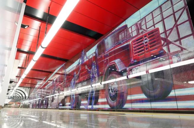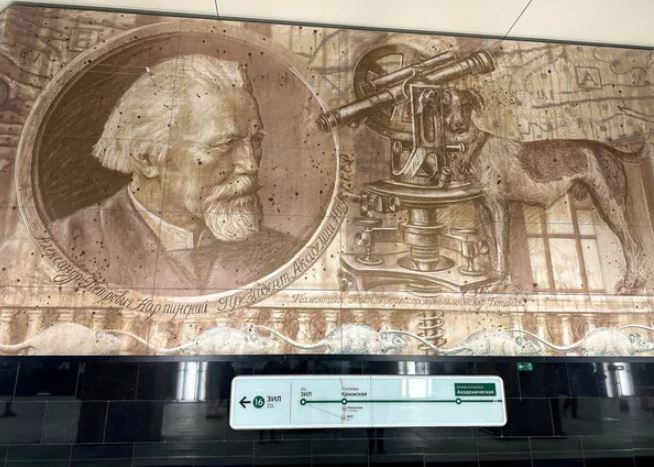 Ga "Akademicheskaya": Là điểm nhấn nghệ thuật của nhà ga, hình ảnh tòa nhà Viện Hàn lâm Khoa học và chân dung của các nhà khoa học lỗi lạc từ nhiều thời đại khác nhau đã được bố trí ở bức tường đường ray. Trong số đó có bác sĩ thường trực của Peter Đại đế và là chủ tịch đầu tiên của Viện Hàn lâm Khoa học St. Petersburg, Lavrenty Blumentrost (1692–1755), giám đốc Thư viện St. Petersburg của Viện Hàn lâm Khoa học, Ivan Schumacher (1690–1761), một trong những người sáng lập ngành vật lý hóa học và là người đoạt giải Nobel Nikolay Semenov (1896–1986), cũng như nhà khoa học tự nhiên và nhà tư tưởng Vladimir Vernadsky (1863–1945). Các hình ảnh được tạo ra bằng kỹ thuật kết hợp các yếu tố của hội họa cổ điển và nghệ thuật hiện đại.