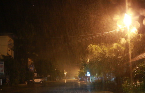 Mưa bắt đầu nặng hạt tại thị xã Sông Cầu lúc 21g30 - Ảnh: Tiến Thành