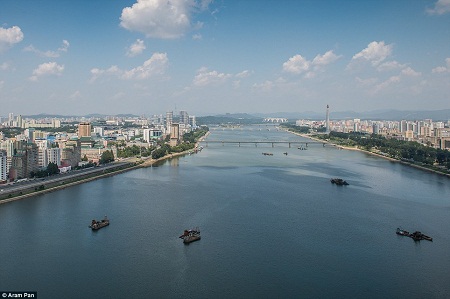 Thủ đô Bình Nhưỡng nhìn từ cửa sổ phòng khách sạn.