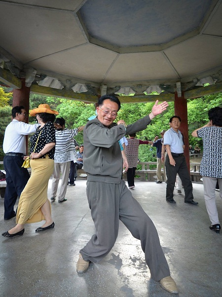 Các cụ già cùng nhau khiêu vũ.