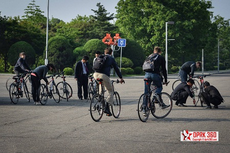 Ở Triều Tiên hiện có khá nhiều khách du lịch nước ngoài. Họ có thể thuê xe đạp để di chuyển.