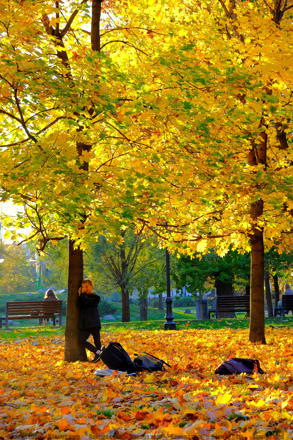 Đã nửa năm trôi qua, mùa nào tôi cũng ra đây vài ba lần. Mỗi mùa có một vẻ đẹp riêng. Và khi quyết định chụp bộ ảnh mùa thu, tôi đã nghĩ đến nơi này đầu tiên. Khi đến, thực sự tôi cảm thấy hài lòng. Cảnh vật cũng như con người ở đây đem đến cho tôi rất nhiều cảm xúc. Tôi thích chụp phong cảnh và đời thường, nên không chú ý nhờ một hay một vài người mẫu cố định, mà nếu bắt gặp bất kỳ một khung cảnh nào đẹp, thú vị, tôi đều nhanh tay chụp lại. Có lúc đó là bức ảnh chụp ông bố chơi với con, có lúc là một "người mẫu nhí bất đắc dĩ" giữa đống lá vàng, có lúc là những đứa trẻ chơi đùa với lá, có lúc là một cậu bé tựa gốc cây đang giả vờ cầm điện thoại ngắm chụp ảnh, hay một cô gái đang chơi đùa cùng chú chó cưng, có lúc là cảnh mọi người ngồi dưới tán cây trò chuyện, ngắm lá vàng rơi, có khi chỉ đơn giản là những ánh nắng mùa thu qua tán lá phong.