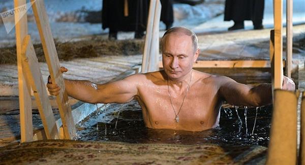 Hình ảnh Tổng thống Putin ngâm mình trong nước lạnh tại Orthodox Epiphany. (Nguồn: Sputnik).