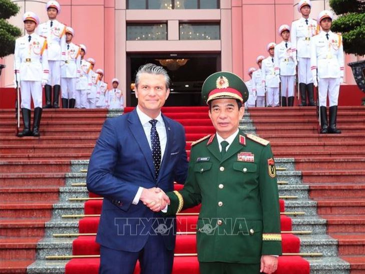 Chiều 2/11, tại trụ sở Bộ Quốc phòng (Hà Nội), Đại tướng Phan Văn Giang, Ủy viên Bộ Chính trị, Phó Bí thư Quân ủy Trung ương, Bộ trưởng Bộ Quốc phòng Việt Nam chủ trì lễ đón ông Pete Hegseth, Bộ trưởng Bộ Chiến tranh (trước đây tên gọi là Bộ Quốc phòng) Hoa Kỳ cùng các thành viên đoàn.