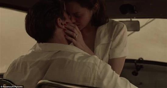 Brad Pitt và Marion Cotillard trao cho nhau nụ hôn cháy bỏng trong phim (ảnh: Paramount Pictures)