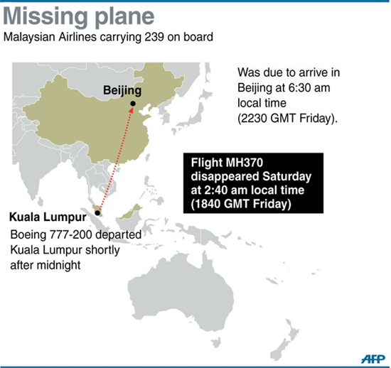 227 hành khách và 12 nhân viên phi hành đoàn bị mất liên lạc ngày 8/3