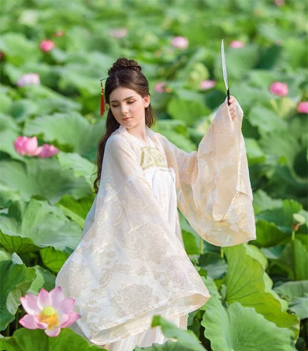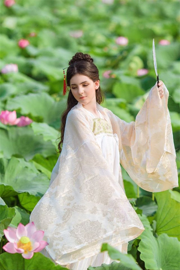 “Búp bê lai” Việt - Nga diện áo yếm, hóa tiên nữ tạo dáng bên hoa sen