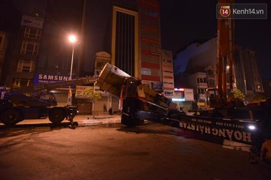 Cần cẩu trọng tải lớn tự lật trong đêm ở Hà Nội