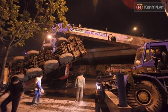 Khoảng 0h ngày 20/12 tại khu vực trước cửa nhà 29 Nguyễn Xiển, Thanh Xuân, Hà Nội đã xảy ra vụ lật cần cẩu khá hi hữu.