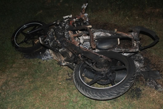 Chiếc xe máy bị người dân đốt cháy rụi.