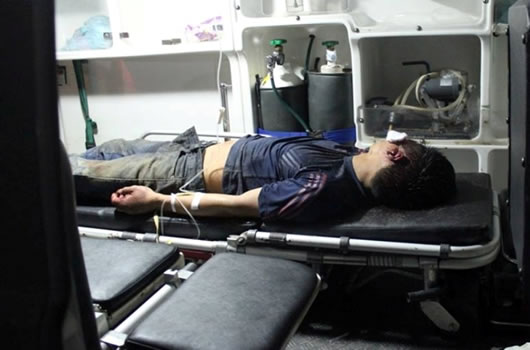 Nhiều người vây không cho xe cứu thương chuyển 4 thanh niên đi cấp cứu.