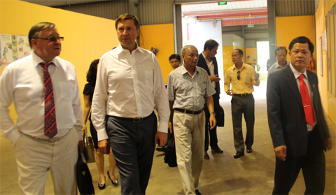 Ông Lương Thế Hùng dẫn đoàn đi tham quan Nhà máy Mê Trang