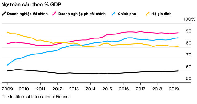 Các công ty "thây ma" ở Trung Quốc, sinh viên Mỹ nợ nần chồng chất, mức thế chấp cao "ngất trời" ở Úc và rủi ro vỡ nợ của Argentina đã đẩy thế giới đứng trên bờ vực của khủng hoảng nợ. Chính sách cho vay được nới lỏng trong cả một thập kỷ khiến cả thế giới đối mặt với khoản nợ chính phủ và nợ hộ gia đình lên tới 250 nghìn tỷ USD. Con số này gần như cao gấp 3 sản lượng kinh tế toàn cầu và tương đương với việc mỗi người trên thế giới, bao gồm trẻ em, phải gánh khoản nợ 32.500 USD.