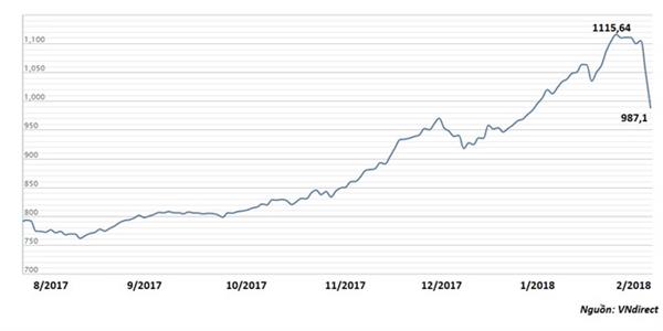 Chỉ trong 2 ngày hôm qua và sáng hôm nay (6/2), chỉ số VN-index đã quay về mốc cuối năm 2017.