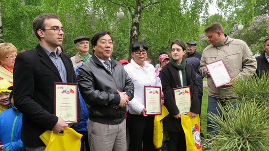 Cũng nhân dịp này, Hội Hữu nghị Nga – Việt đã công bố kết quả cuộc thi toàn Nga “Tìm hiểu về Thân thế, Sự nghiệp của Chủ tịch Hồ Chí Minh” nhân kỷ niệm tròn 125 năm sinh của Người mà Hội tổ chức gần đây. 4 thí sinh Nga đoạt kết quả cao đã được Đại sứ Nguyễn Thanh Sơn và Chủ tịch Danh dự Hội Hữu nghị Nga – Việt Glazunov trao tặng các Giải thưởng và quà lưu niệm ngay bên cây thông, trong tiếng hoan nghênh nhiệt liệt của đông đảo đại biểu tham dự. Phát biểu nhân dịp này, Đại sứ Nguyễn Thanh Sơn khẳng định: