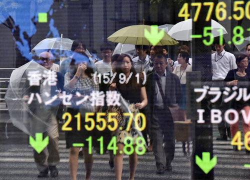Bảng tỉ giá chứng khoán tại thủ đô Tokyo, Nhật Bản ngày 1/9. Ảnh: AFP/TTXVN