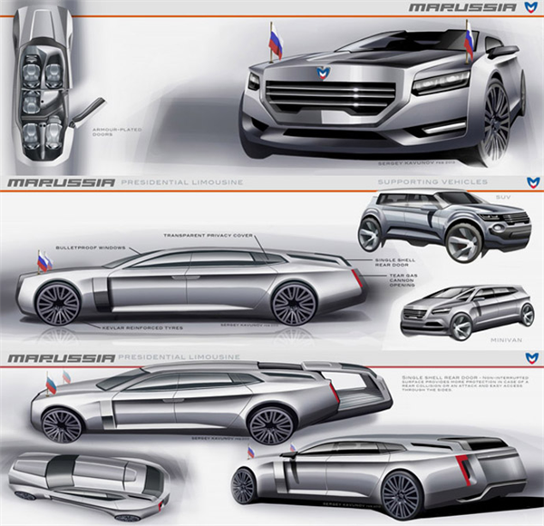 Hàng chục nhà thiết kế xe hơi chuyên nghiệp và nghiệp dư đang đua tài trong cuộc thi thiết kế limo dành cho Tổng thống Nga Vladimir Putin trên trang CarDesign.ru được tổ chức và tài trợ bởi Marussia Motors.