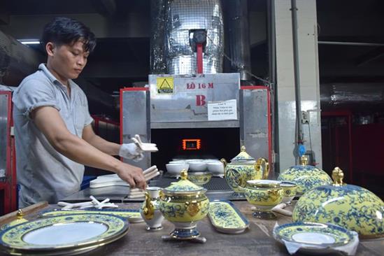 Trải qua 30 công đoạn sản xuất quan trọng, sản phẩm chén ngọc còn phải nung 5 lần theo kỹ thuật nung liền khối ở nhiệt độ 1.360 – 1.380 độ C. Ảnh: Người đô thị.