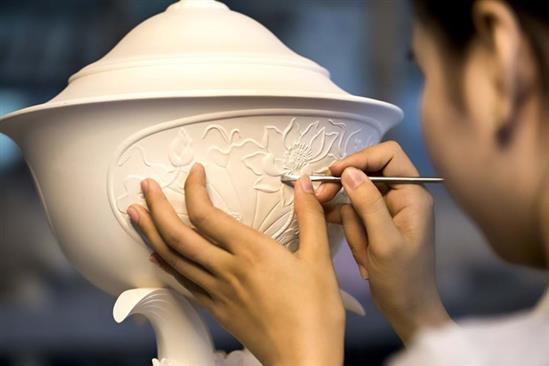 Chén ngọc APEC 2017 là sản phẩm từ nhiều kỹ thuật sản xuất tiên tiến, hiện đại bậc nhất trong lĩnh vực sản xuất gốm sứ. Ảnh: Zing.