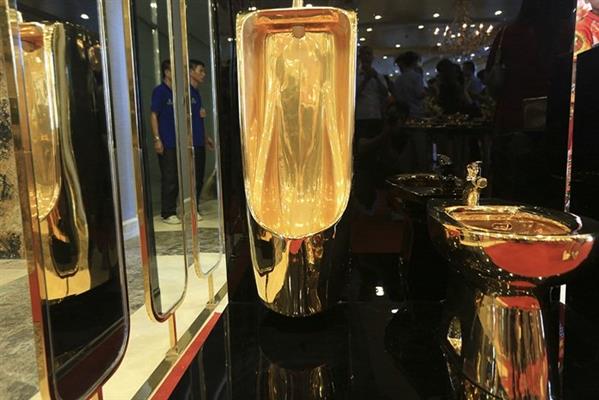 Khu vực vệ sinh cá nhân bên trong cũng được dát toàn vàng