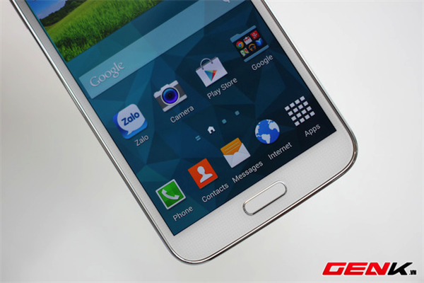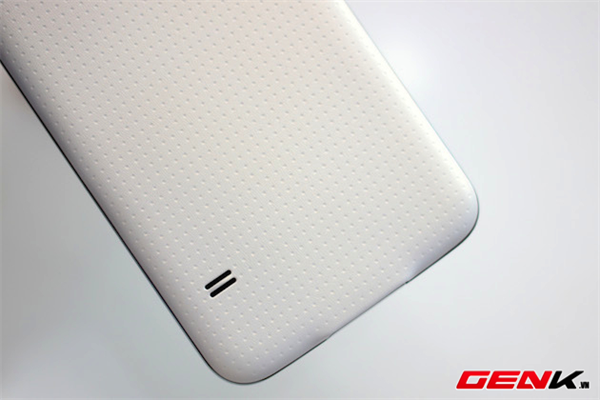 Bên cạnh chất liệu và thiết kế không có sự thay đổi, màu trắng trên Galaxy S5 lại đem lại cảm nhận sử dụng rất khác biệt so với phiên bản màu đen. Nắp lưng của phiên bản này có màu trắng ngà, hơi ánh vàng khi người dùng xoay nhẹ máy trên tay. Thêm vào đó, mặt trước của máy cũng được trang trí với các vân li ti tương tự như trên Galaxy S4 trước đây. Tuy nhiên, màu sắc của máy lại khiến cho màn hình có vẻ như nhỏ hơn và lộ rõ nhược điểm viền màn hình còn khá dày của S5.