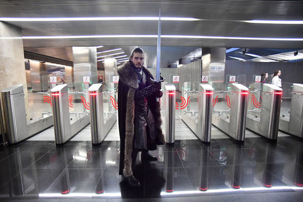 Sự kiện kéo dài một ngày này diễn ra tại nhà ga Delovoy Tsentr, với ba người vào vai các nhân vật chính của Trò chơi Vương quyền là Daenerys Targaryen, Cersei Lannister và Jon Snow hôm thứ 7 vừa qua.