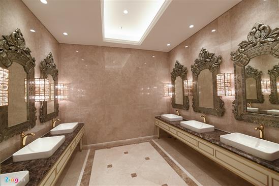 Khu nhà vệ sinh bên cạnh phòng đại tiệc được trang bị các thiết bị hiện đại, nhập khẩu từ các nước với tiêu chuẩn dành cho khách sạn 6 sao.