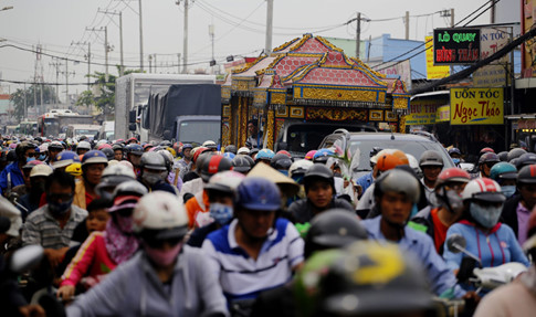 Dòng xe nhúc nhích từng chút để thoát ra đoạn đường kẹt cứng