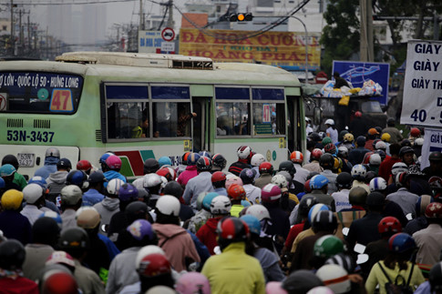 Dòng xe chen chúc nhau trên quốc lộ 50