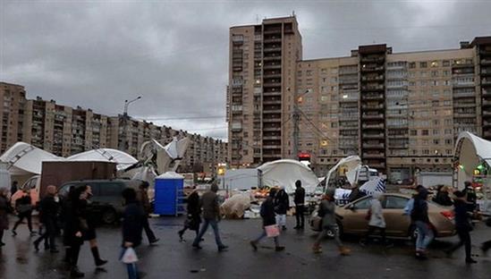 Trong ngày hôm nay 5/12, gió rất mạnh đã thổi bay một khu chợ ngoài trời gần nhà ga tàu điện ngầm "Prospect Bolshevik" ở thành phố St. Petersburg, khiến cho ba người bị thương phải nhập viện.