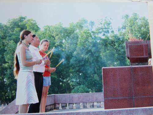 Olia thắp hương trước phần mộ gia đình ở Hà Tĩnh