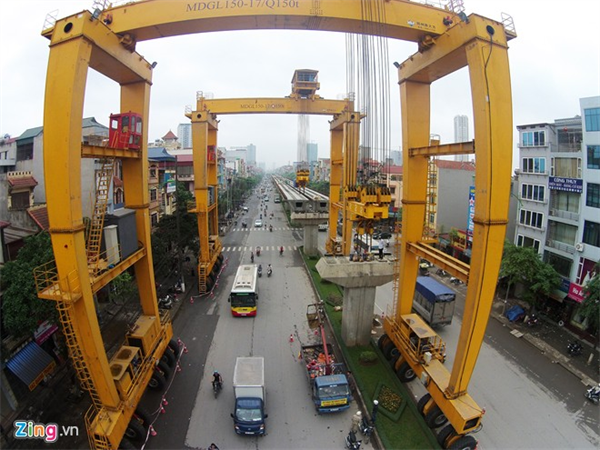 Tuyến tàu điện trên cao ở Hà Nội bắt đầu lắp dầm