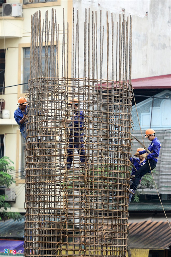 Mới chỉ có hơn 300 trong tổng số 421 cột trụ được hoàn thành. Tại nhiều điểm, công nhân mới đang lắp hộp sắt để đổ bê tông. Gói thầu chính của dự án (thiết kế, cung cấp thiết bị, vật tư và xây lắp) do Công ty hữu hạn Tập đoàn cục 6 đường sắt Trung Quốc thực hiện theo hình thức tổng thầu EPC.