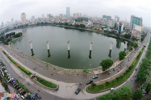 Hồ tù tại điểm đầu Cát Linh đang được san lấp để có thể triển khai hạ tầng cơ sở cho nhà ga số 1. Dự án đường sắt đô thị Cát Linh - Hà Đông (Hà Nội) gồm các hạng mục: xây dựng 13 km đường sắt đi trên cao, 1,7 km ra vào khu trạm, đường sắt đôi có khổ 1,435 m, tốc độ tối đa 80 km/h; trang bị 13 đoàn tàu 4 toa xe công suất khoảng 1.200 người, tần suất chạy 2 phút/chuyến. Dự án cũng bao gồm 12 ga trên cao, nhà điều hành 9 tầng trong khu depot rộng 23 ha.