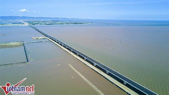 Cầu vượt biển dài nhất Việt Nam tuyệt đẹp từ trên cao