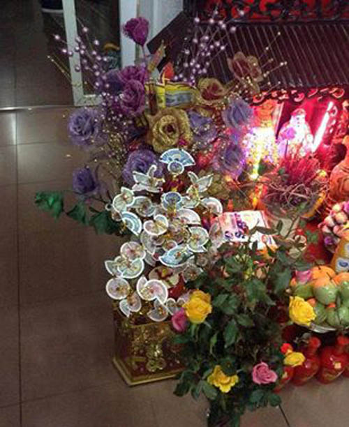 Cây tiền thật được dùng để trang trí trên bàn thờ tổ tiên trong ngày tết Nguyên Đán.